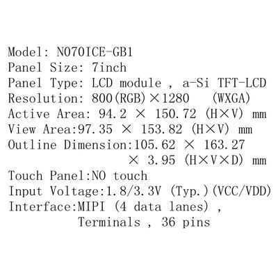 Высокопроизводительный 7-дюймовый TFT-LCD дисплейный модуль с разрешением 800 * 1280 WXGA, с использованием технологии IPS для широких углов просмотра и отличной цветовой репродукции.